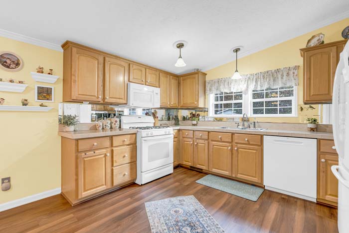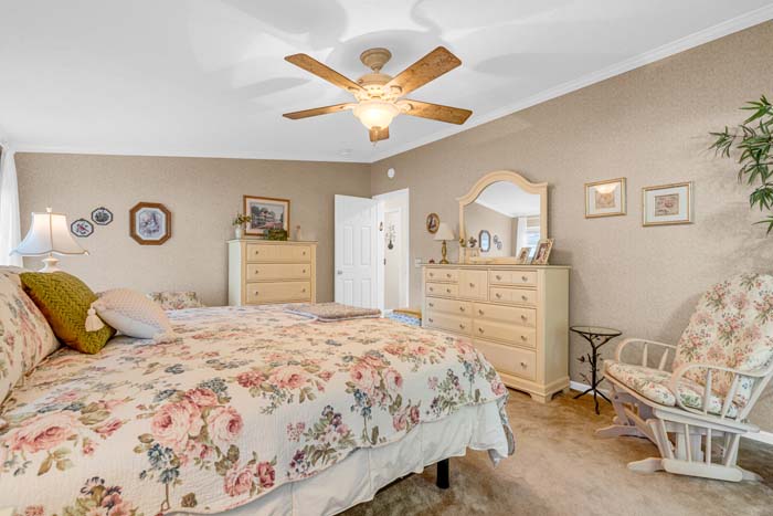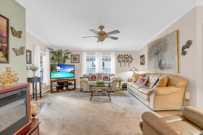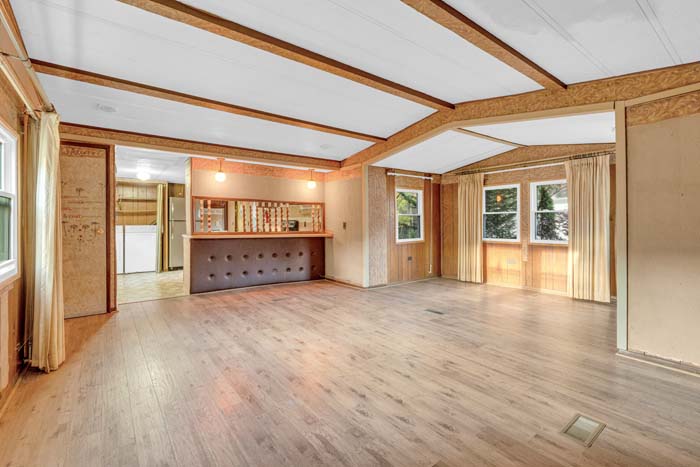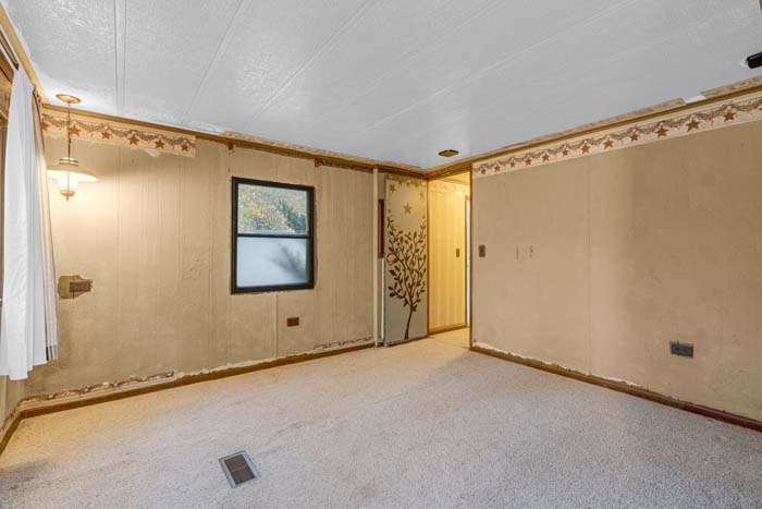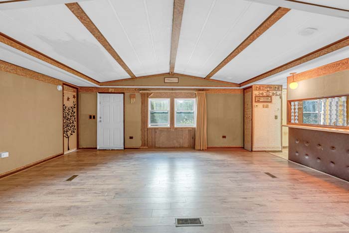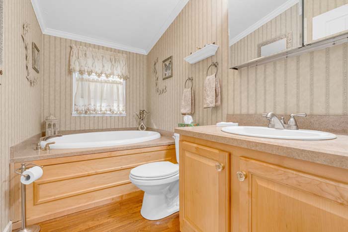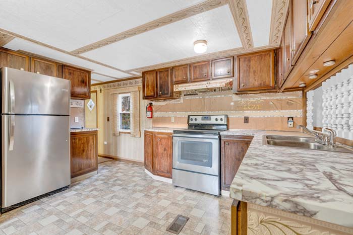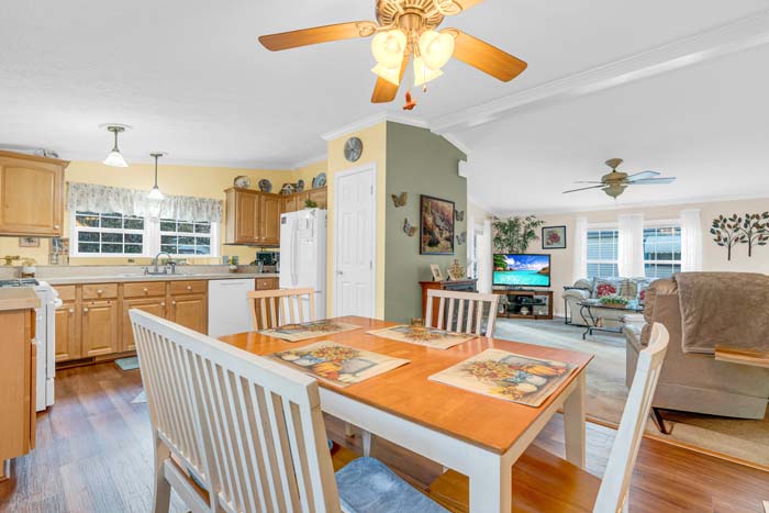 This crisp clean manufactured home with spacious living-dining-kitchen also features an owners suite for King Size furniture, walk in closet and private bathroom.