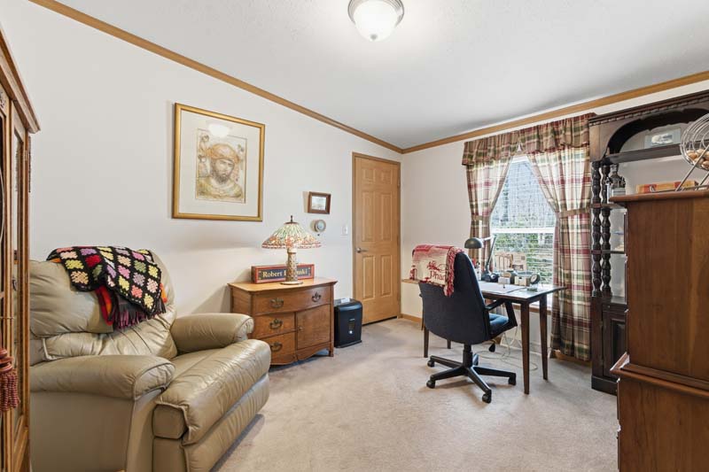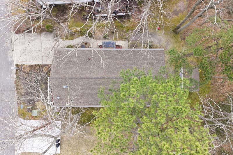 This home borders the woods where a trickle of a stream meanders 20 feet below the property line.
